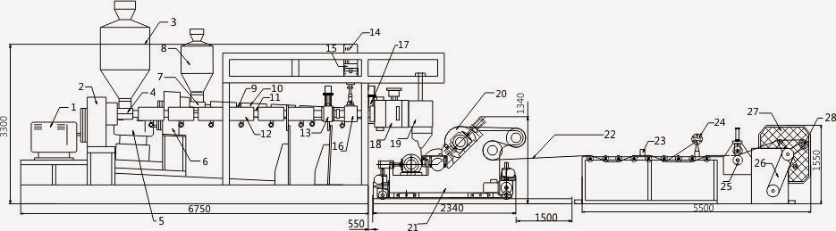 2、精確的模具流道設(shè)計(jì),柔性模唇間隙微調(diào)裝置及可更換、可調(diào)節(jié)模唇。