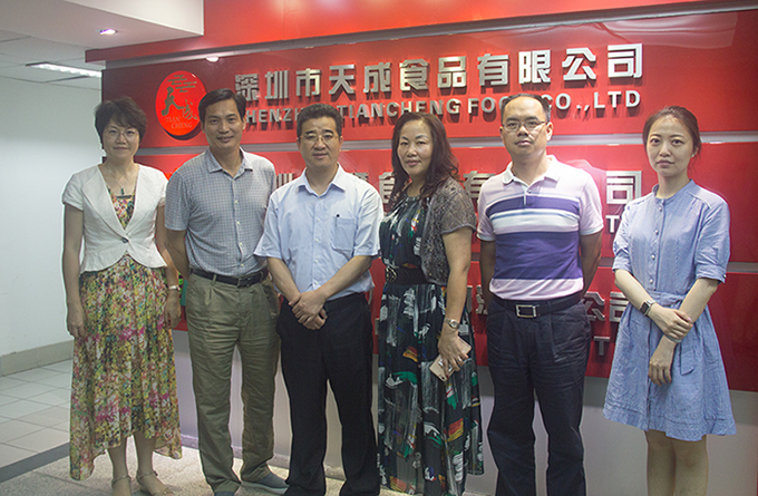 2016年6月14日上午,鹽田區(qū)區(qū)委常委、常務(wù)副區(qū)長(zhǎng)黃偉平帶領(lǐng)助理王曉霞、經(jīng)促局副局長(zhǎng)陳忠曉、金融科科長(zhǎng)王靜蒞臨深圳市天成食品有限公司進(jìn)行企業(yè)走訪指導(dǎo)工作。