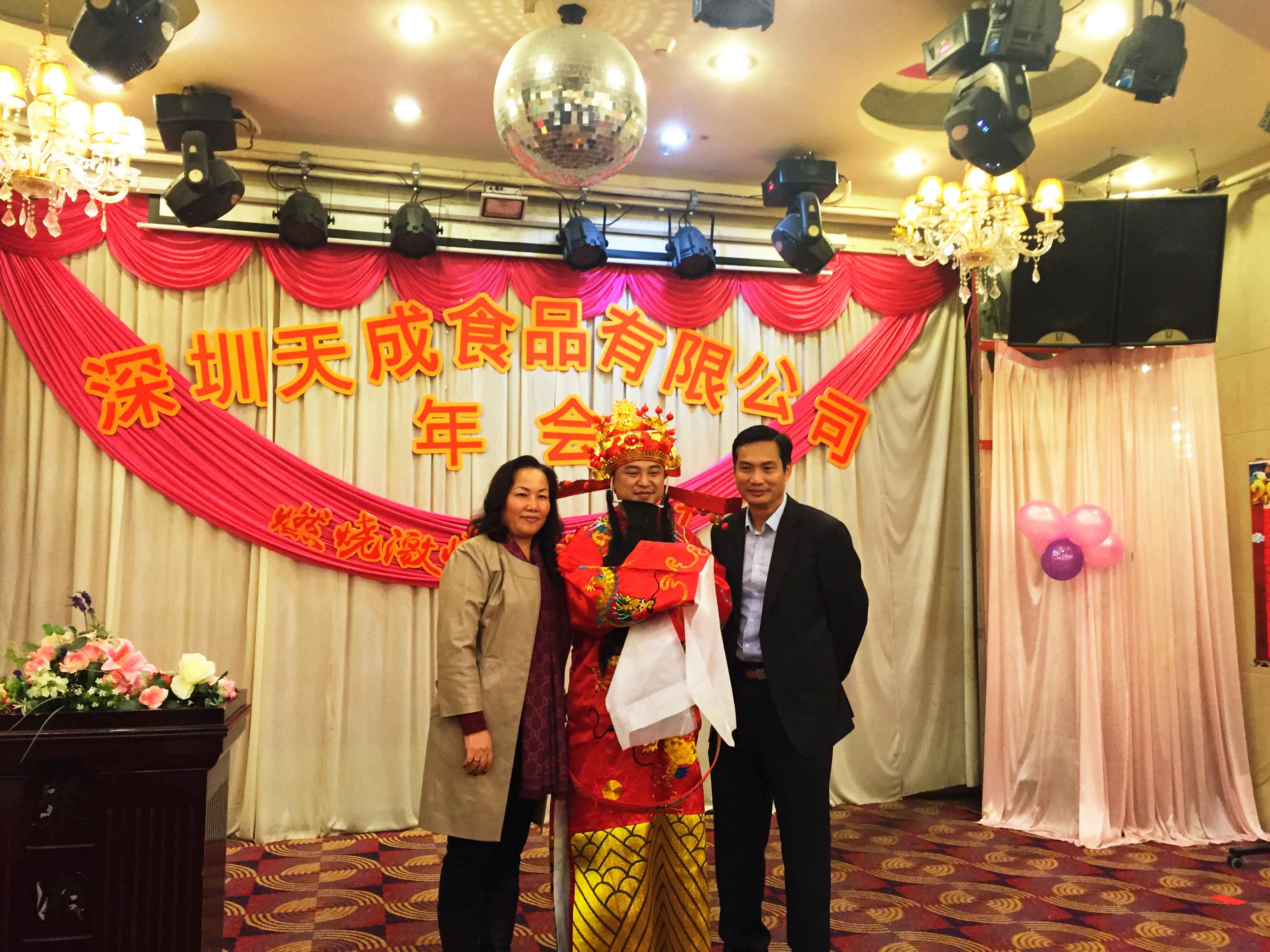 豪情歡歌辭舊歲,喜氣開篇迎新年,2017年1月13日晚上7點(diǎn),深圳天成食品有限公司新春年會在深圳市鹽田區(qū)沙頭角金沙酒樓二樓隆重舉行,公司領(lǐng)導(dǎo)及全體員工100余人歡聚一堂,共度聯(lián)歡。 年會以少兒舞蹈《金雞翅舞》打開年會的開場,年會各部門員工帶來了形式各異、讓人目不暇接... -
