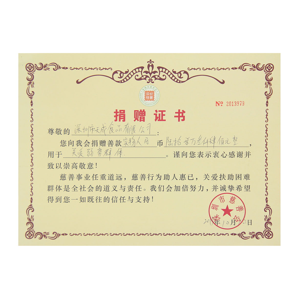 慈善捐贈(zèng)證書(shū)