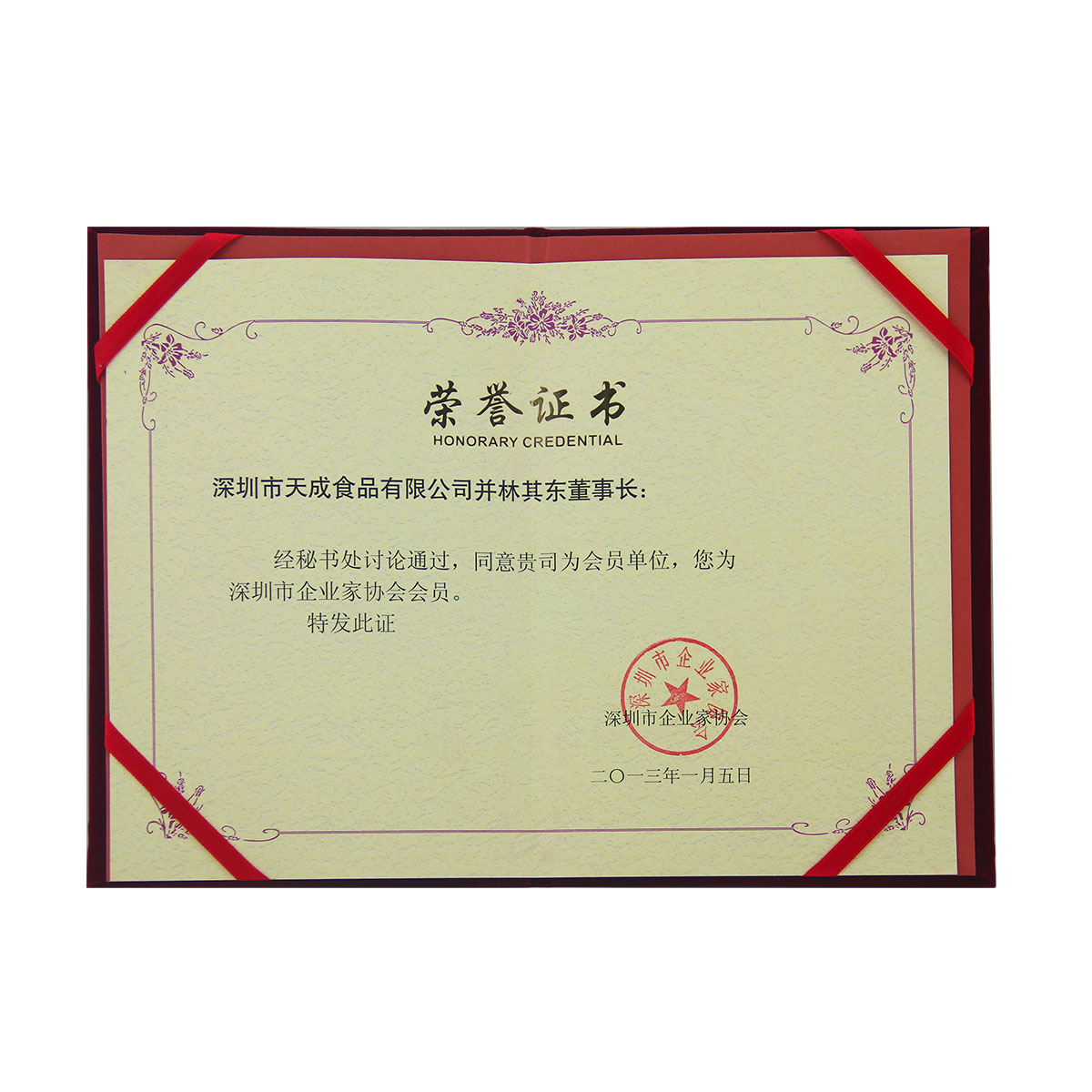 深圳市企業(yè)家協(xié)會(huì)會(huì)員單位證書(shū)